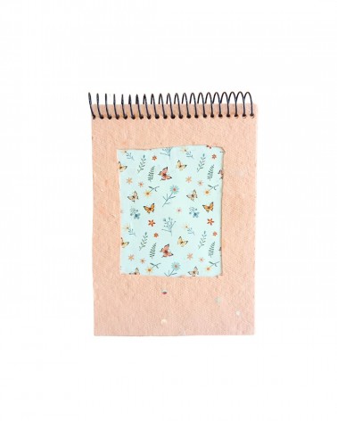 -Llibreta mida DinA6 amb imatge vegetal i de papallones petites.