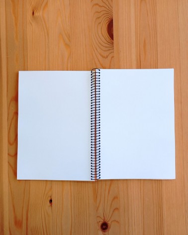 -Mides: Alt 11 cm, ample 16 cm i gruix 1 cm. 60 pàgines de paper blanc.