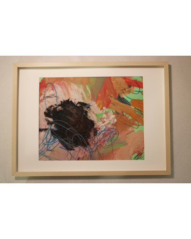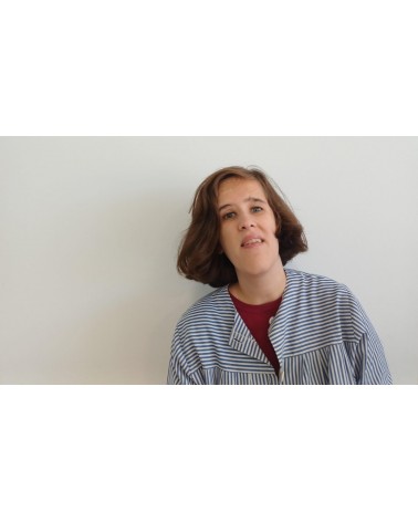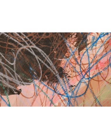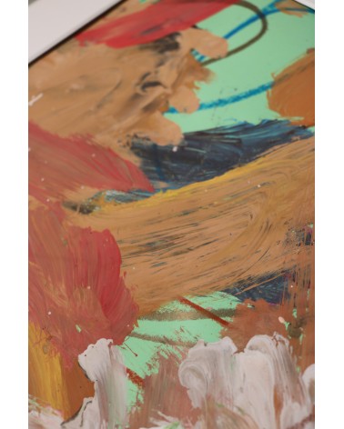 “La Trini és una artista carinyosa i alhora impulsiva, amb una energia creativa que rarament es manté en una sola activitat durant massa temps. Li agrada combinar ceres de colors, pintura acrílica i tempera seca per donar textura i força expressiva a les seves obres. Al taller, el procés creatiu es converteix en una experiència compartida, ja que la Trini convida sempre a participar i gaudir de l’obra amb ella.”